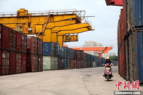 资料图:火车站内堆满了集装箱。 中新社记者 张远 摄